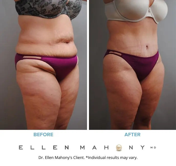 Both she and her husband began a search for a female board certified plastic surgeon. A woman who would take the time to review the differences between liposuction and tummy tucks. After visiting Dr. Mahony’s website and reading the numerous positive reviews, they called and set up a consultation. She had been understandably fearful at the prospect of surgery but by the time Dr. Mahony explained the various procedures, she felt not well informed but also very confident in her decision making.