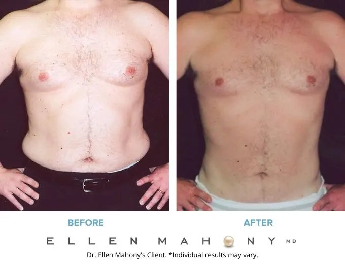 This 39- year old, 6’1, 220lb, executive came to me complaining of chestfullness and a sparetire. He wanted to try and find a reasonable solution to reclaim his masculine body. He was mainly concerned with his chest and the extra fat around his hips and waist.