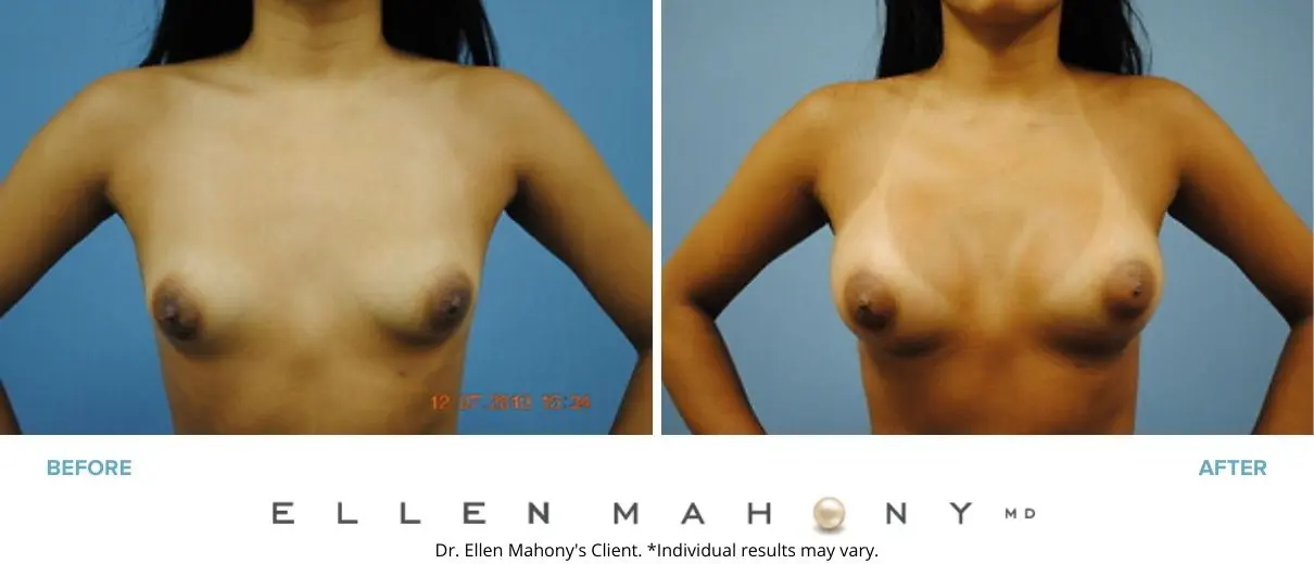 As an attractive 19-year old A-cup woman, this young lady was embarassed by the shape of her breasts. She complained that they were narrow, long and lacking shape. Her aunt referred her to me to explain how breast augmentation might improve her breast shape and confidence.