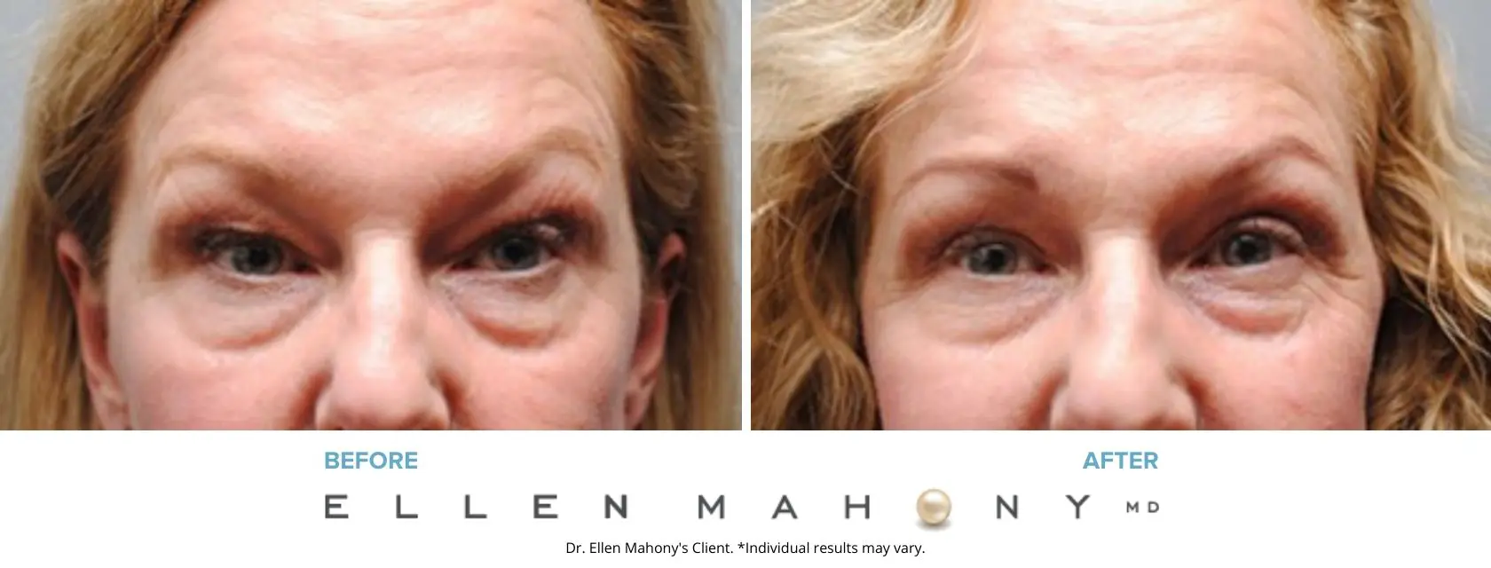 As you can see from this patient’s before and after photos her results were excellent. Her eyes now appear more open which takes years off her face! Not only is she completely satisfied with her results she was very happy with her overall experience at Ellen Mahony, MD!