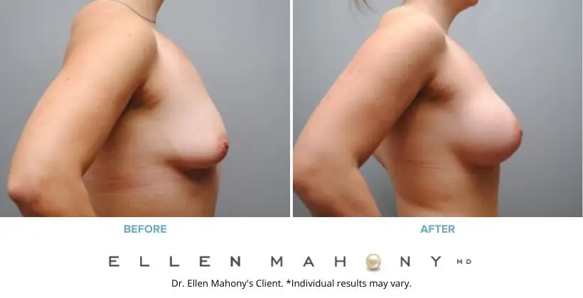 Although it may seem that a Breast Augmentation is always the same procedure, that’s really not the case. The truth of the matter is that every woman is unique and has a special vision of her breast surgery outcome. By way of example, this petite lady (5’2” and 134 lbs) enjoys her current B cup shape but feels that her breasts have lost too much volume for her young (28 years old) age. Her goal isn’t to become a “busty” woman. She just wants to add some shape to her frame and balance out her proportion.
