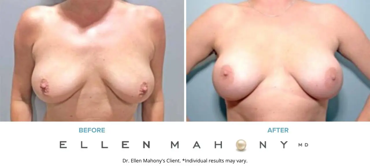 One thing she knew for sure was the importance of finding a highly experienced and board certified plastic surgeon, and for her own comfort– she knew she wanted a female doctor. After viewing Dr. Mahony’s breast augmentation before and after photos and researching her experience and education, she made an appointment right away. Dr. Mahony was happy to answer all the questions she had about the procedure and recovery in detail. Together they decided that the 335-375cc breast augmentation would be the best implant choice because it allows for more flexibility in the fill of the implant to fix asymmetry, and it is very safe because it is saline.