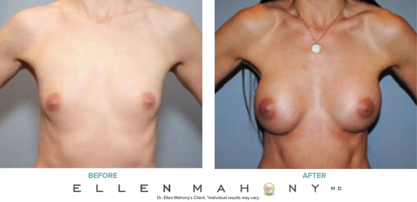 This 35-year-old, 5’10”, 135lb slim woman had always wished of having larger breasts. She felt like she was all height but without shape. She started researching plastic surgeons with the goal of finding a surgeon that displayed results that were realistic and proportionate. Dr. Ellen Mahony appeared in her searches, and she loved the idea of coming to a female plastic surgeon! She went on to visit the doctor’s website and was impressed with the before and after photos. In short order, she made the call to book a consultation for breast augmentation.