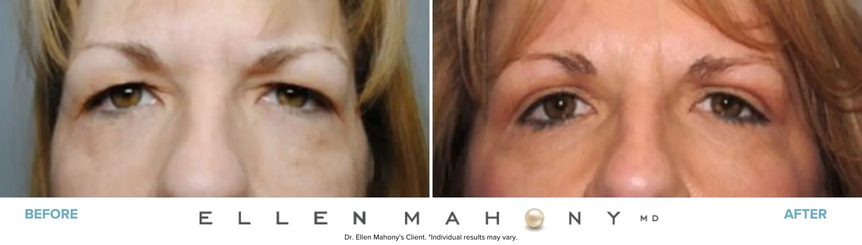 At some point in time, many women start to notice an annoying ledge of skin that sits overtop of their eyelids. This can cause the eyes to always appear tired, despite a full night of rest! Such is the case with our lovely 54-year-old woman, who decided she was ready for a little uplifting. After doing some research, she found Dr. Ellen Mahony online and decided to check out the before and after of the doctor’s eyelid surgery patients. In just moments, she knew this surgery was exactly what she needed– and she booked a consultation!