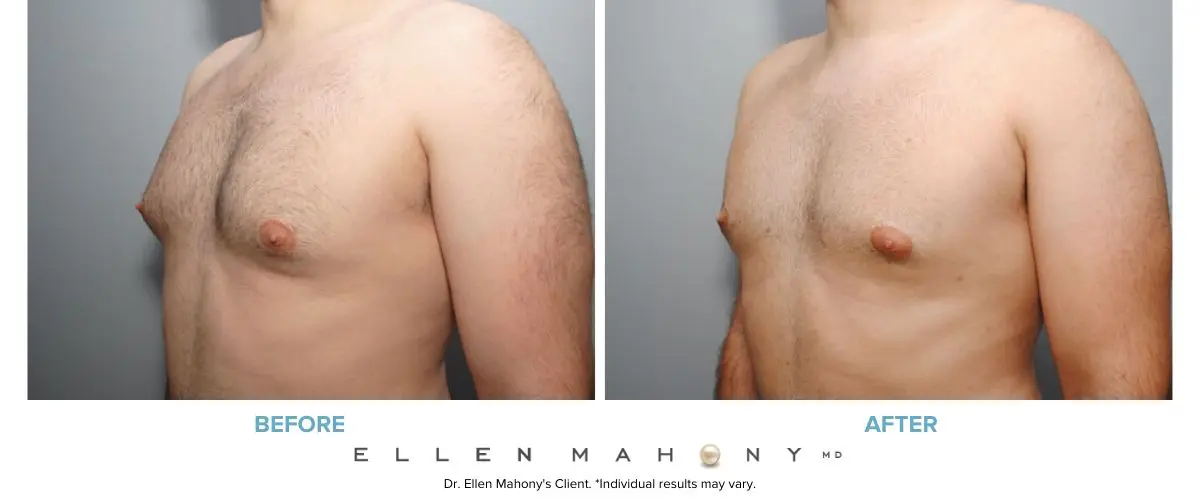 The next step was to make a consultation. As her reviewed surgeons in the area, he decided that Dr. Mahony had the best before and after pictures of male patients with similar complaints of chest fullness, also known as gynecomastia. He met with Dr. Mahony, and she presented him with two different options. Liposuction for tissue that is mostly fatty. If the tissue is glandular, it can be surgically resected. He decided to book surgery with Dr. Mahony because she made him feel very comfortable and felt that he could trust her to determine the best combination of procedures to meet his unique needs.