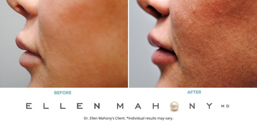 The upper lip lift is an in-office procedure wherein a small amount of skin is removed to lift the upper lip and shorten the distance between the mouth and the nose. It can be done alone or combined with lip filler to perfect your pout. Our gorgeous patient seen here came to us after years of using lip filler and wanted a longer lasting solution.