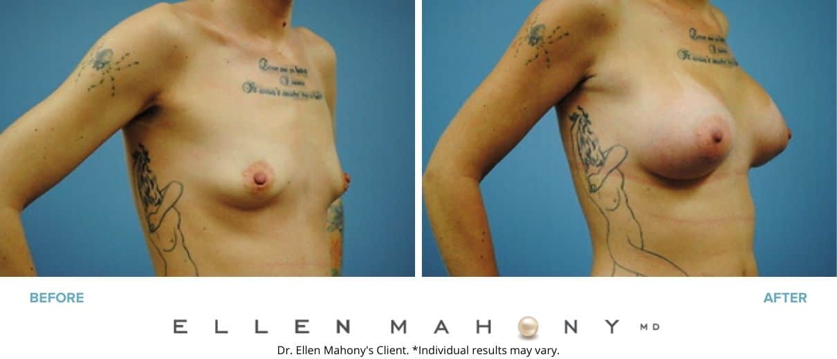 Dr. Mahony offers both saline (saltwater) and the latest generation of silicone gel breast implants. She’ll help you decide which best meets your cosmetic goals. Your breast augmentation can be performed alone or in conjunction with other procedures such as a breast lift, liposuction, or a tummy tuck. Add a