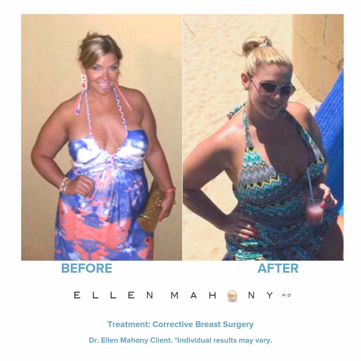 About a year later, Katelen returned to Dr. Mahony's plastic surgery office less than 15 minutes from Fairfield, Connecticut, to complete her cosmetic breast surgery. This second surgery included breast augmentation with saline implants and a right breast mastopexy (lift).